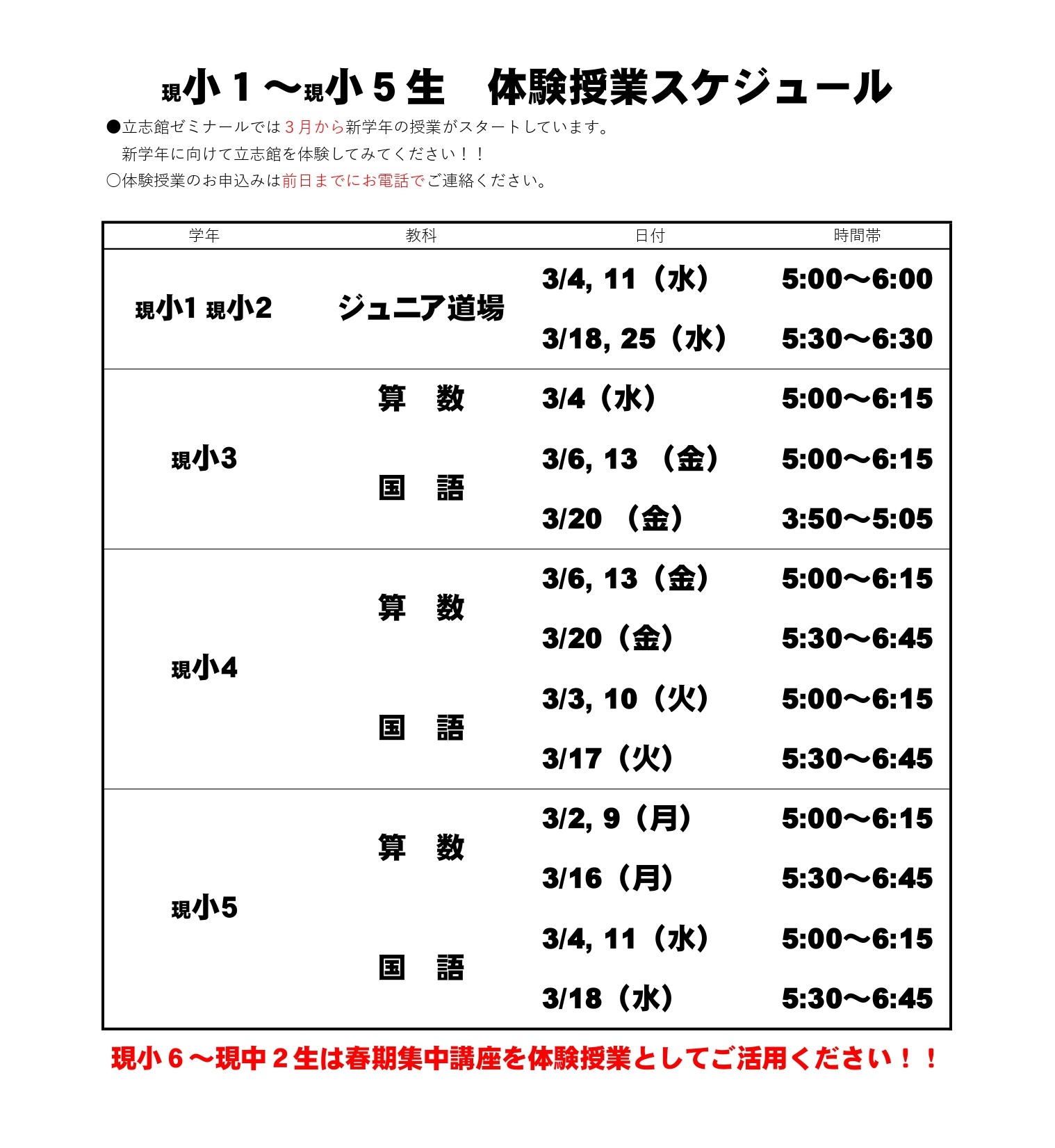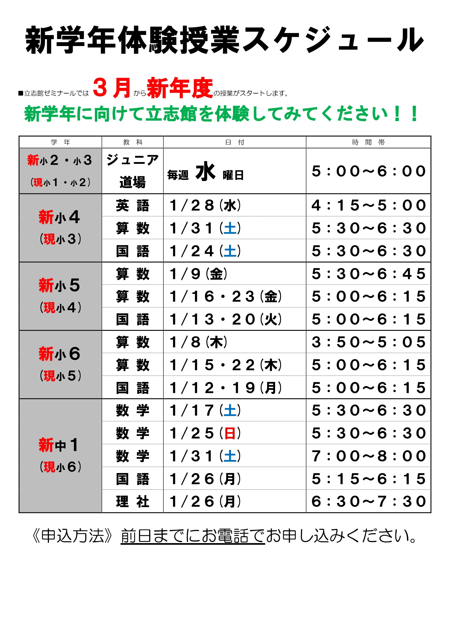 体験授業は随時実施しています。個別にご相談させていただきますので、まずはご連絡ください。